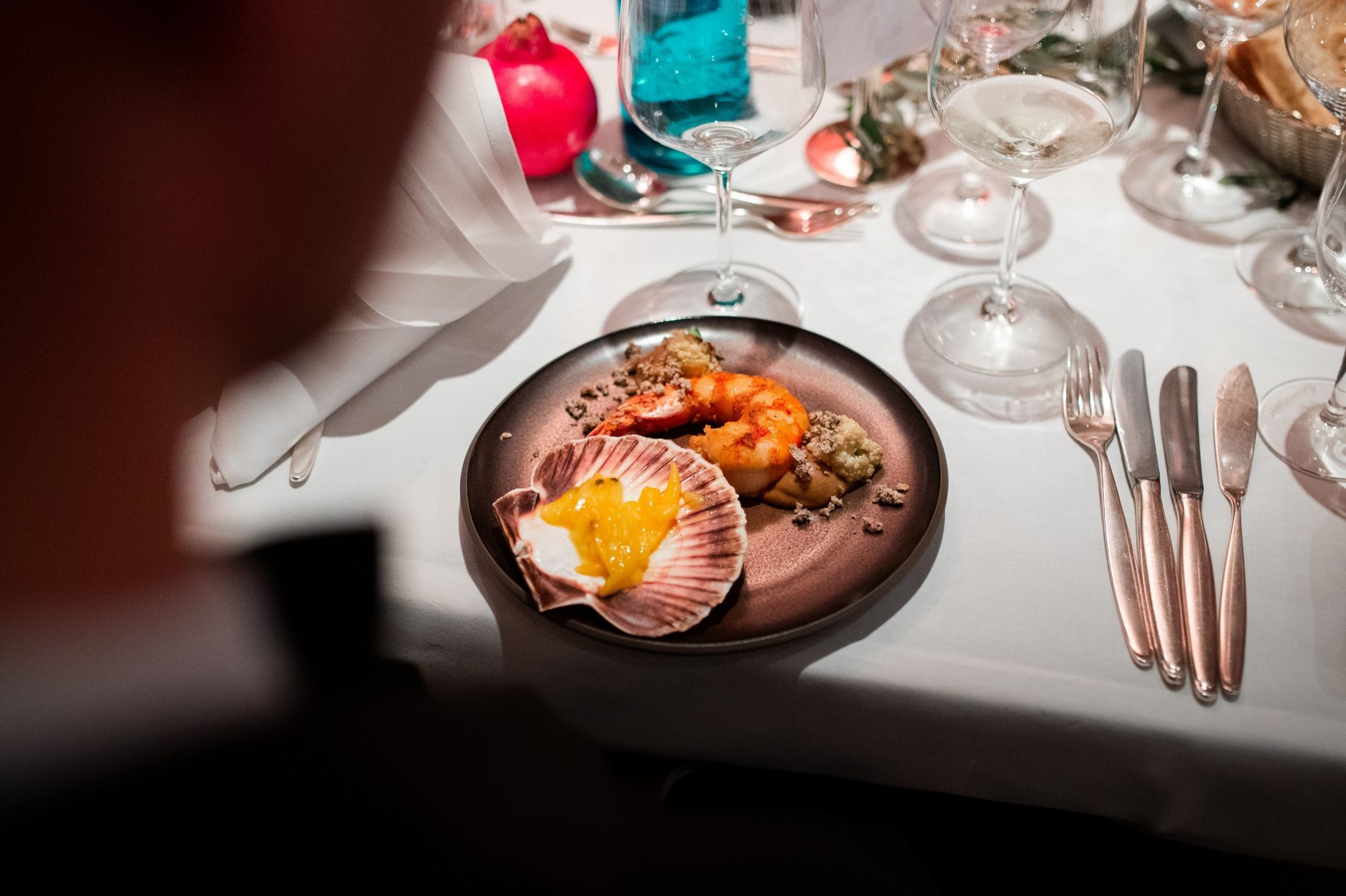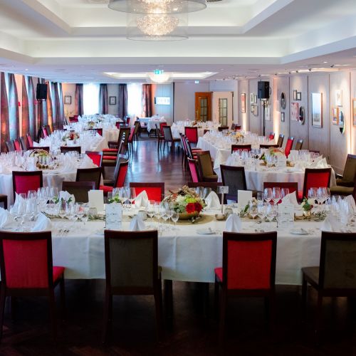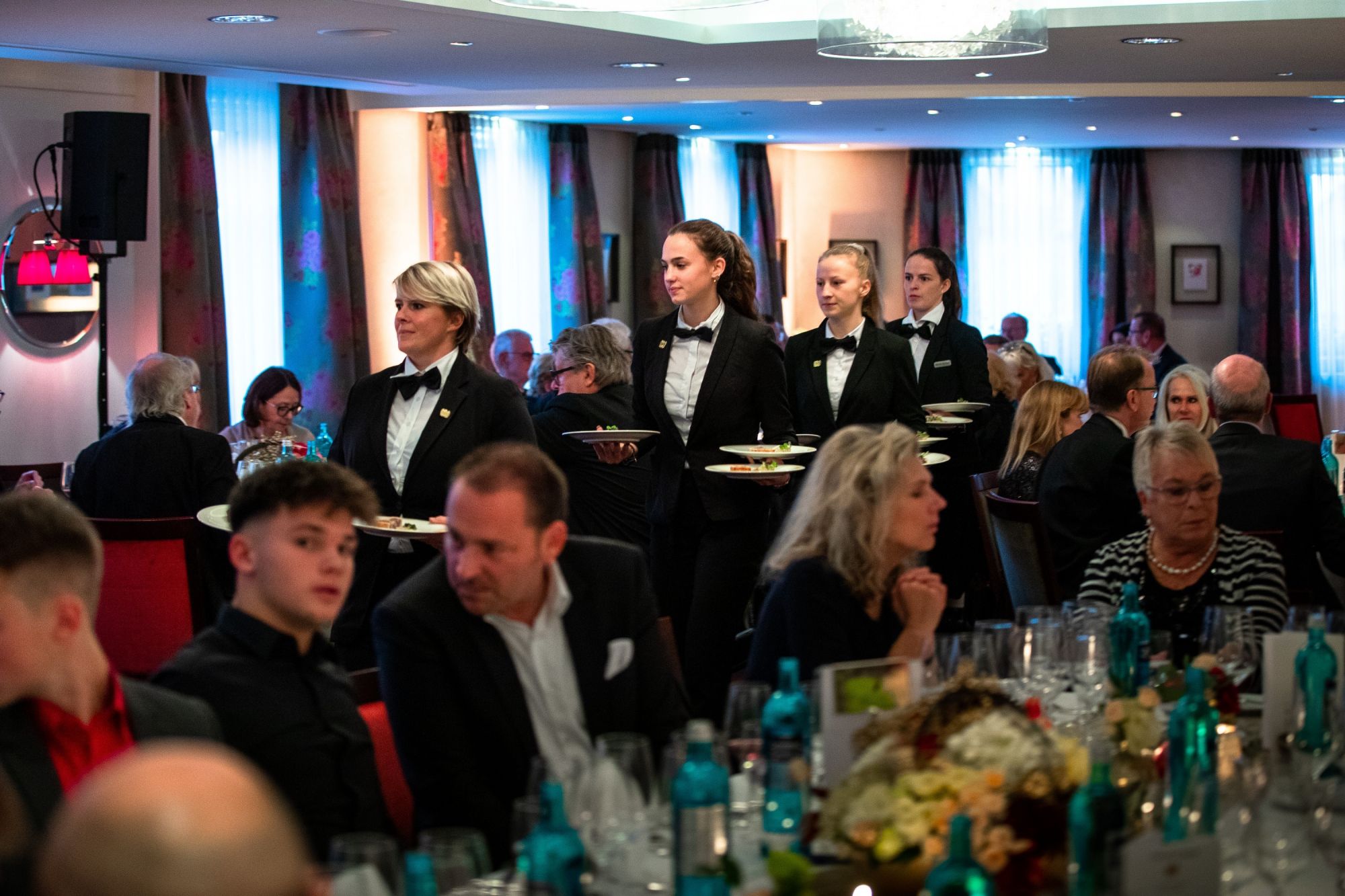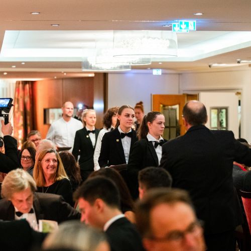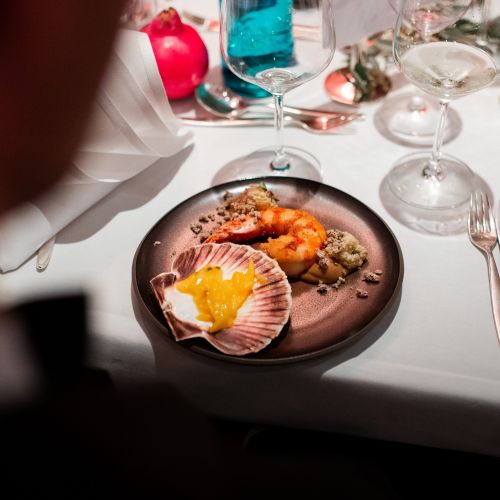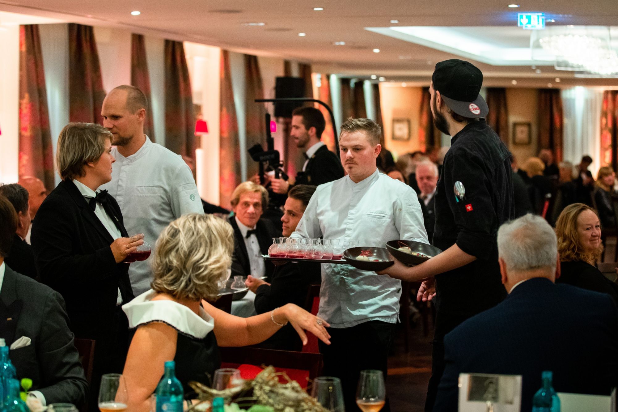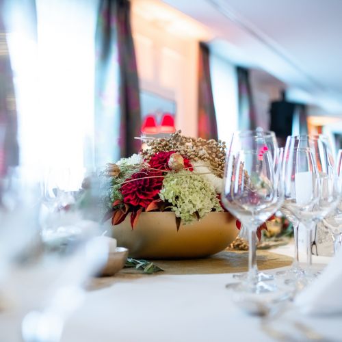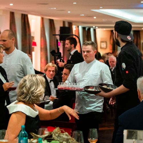 Then it was time for dinner, which consisted of six courses. Each dish was presented by Christian Heller, the hotel manager of the Adler. The dishes were served with matching wines. A magician showed the guests his tricks during the banquet.