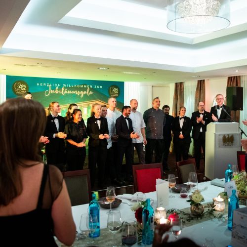 Shortly afterwards, things got emotional: Christian Ottenbacher presented and thanked the staff of the Adler Asperg who had worked so hard for the gala. He also remembered the employees who had worked the longest at the company with each generation of Adler hosts. He named Josa Potalivo who has been with us for 40 years, Marco Hünicke who has been part of the team for 33 years and Christian Heller who has been with the company for 25 years.